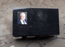 Мы изготовили небольшую плиту из чёрного гранита, на её поверхность прикрепили фотокерамику с изображением покойного.