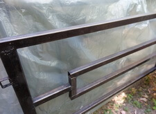 Последовательность работы стандартная. Во-первых, сжечь старую краску, во-вторых, зачистить ограду до металла, после покрыть грунтом чистый металл и покрасить черной краской. После покраски убраться на могиле. Далее на фото обожженная краска на ограде.